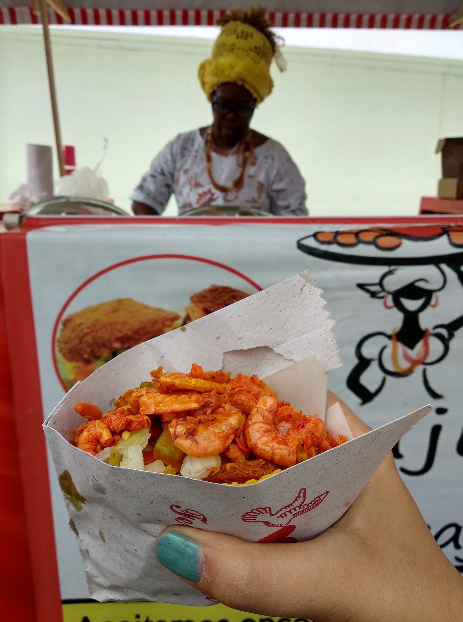 Guaraná becomes an instant favorite beverage. Sweet, fruity, tasting like lychees, it reminds me of Pakola, a drink from my childhood in Pakistan that I rarely see anymore. I eat acarajé, crispy on the outside, soft with bean paste and shrimp inside. I discover cassava, a root that tastes like a more assertive cousin of the potato. Seafood becomes my default; it is my safest halal option.